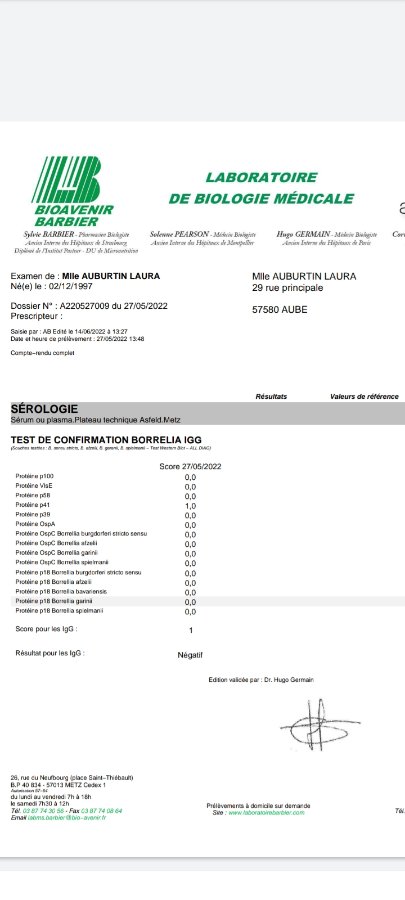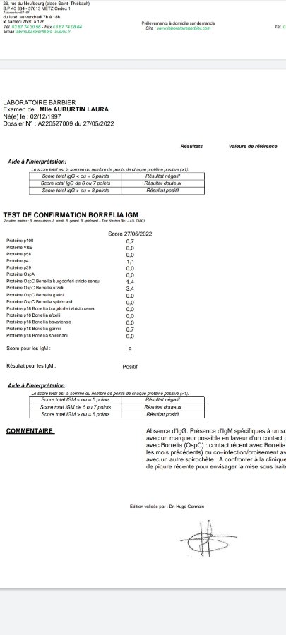 Cependant, ce ne sont non pas les résultats des tests (non fiables en France encore en 2021), qui doivent primer et tout médecin qui s'arrête devant des tests négatifs ne connait pas cette pathologie complexe. mais votre anamnèse et vos signes cliniques qui doivent primer, comme le dit si justement la HAS dans ses recommandations de bonne pratique de juin 2018.
