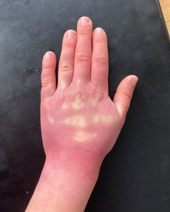 Ma fille (ado) a les mains très rouges depuis l'hiver dernier. L'année passée elles étaient très sèches et gercées, j'ai mis ça sur le compte de la saison, des lavages de mains et d'une sensibilité particulière. L'été dernier cela a disparu et à nouveau au retour du froid elles sont redevenues rouges. Sauf que... je me suis aperçue hier qu'elles ne sont plus du tout sèches (la peau est même hyper bien, vu les couches de karité qu'elle met dessus depuis des mois!) Donc ce n'est pas un facteur extérieur apparemment.