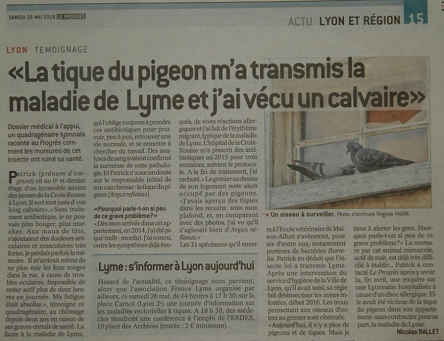 un cas prouvé de contamination (borélia & ricketsies) par morsure d'argas reflexus (tique mole du pigeon) .