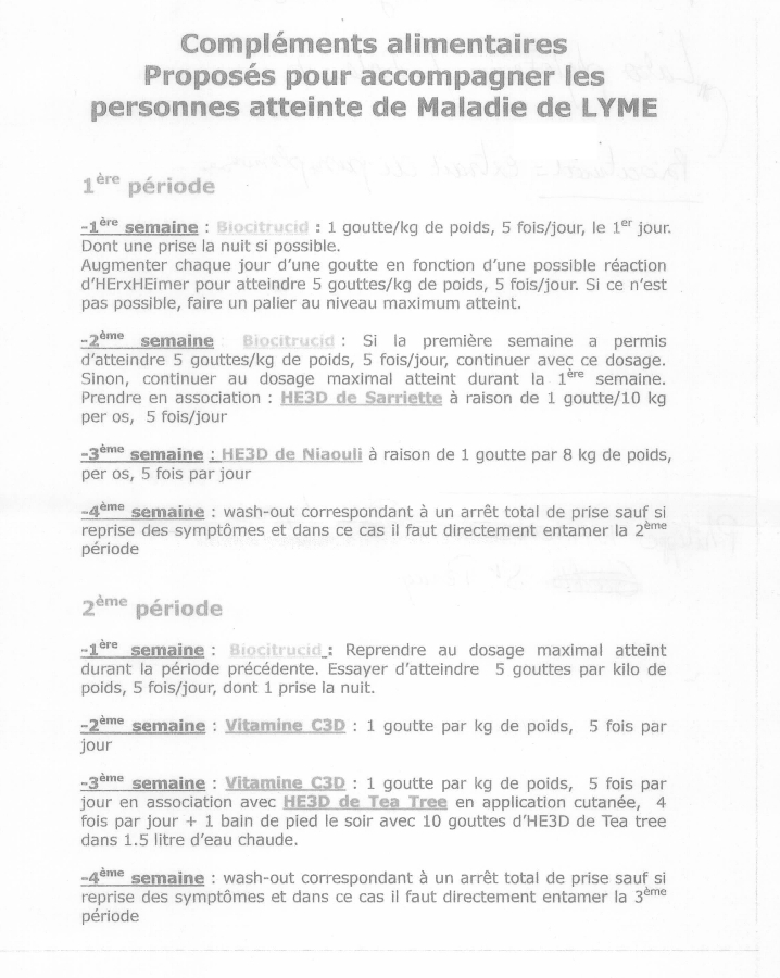 Je cherchais justement ce protocole pour en discuter avec mon doc Lyme!