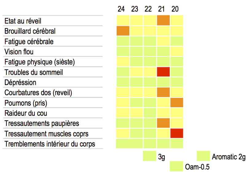 quelque chose ou l'on puisse ressortir graphiquement l’évolution des symptômes sur le temps avec en entrées, symptômes, activité et traitements.